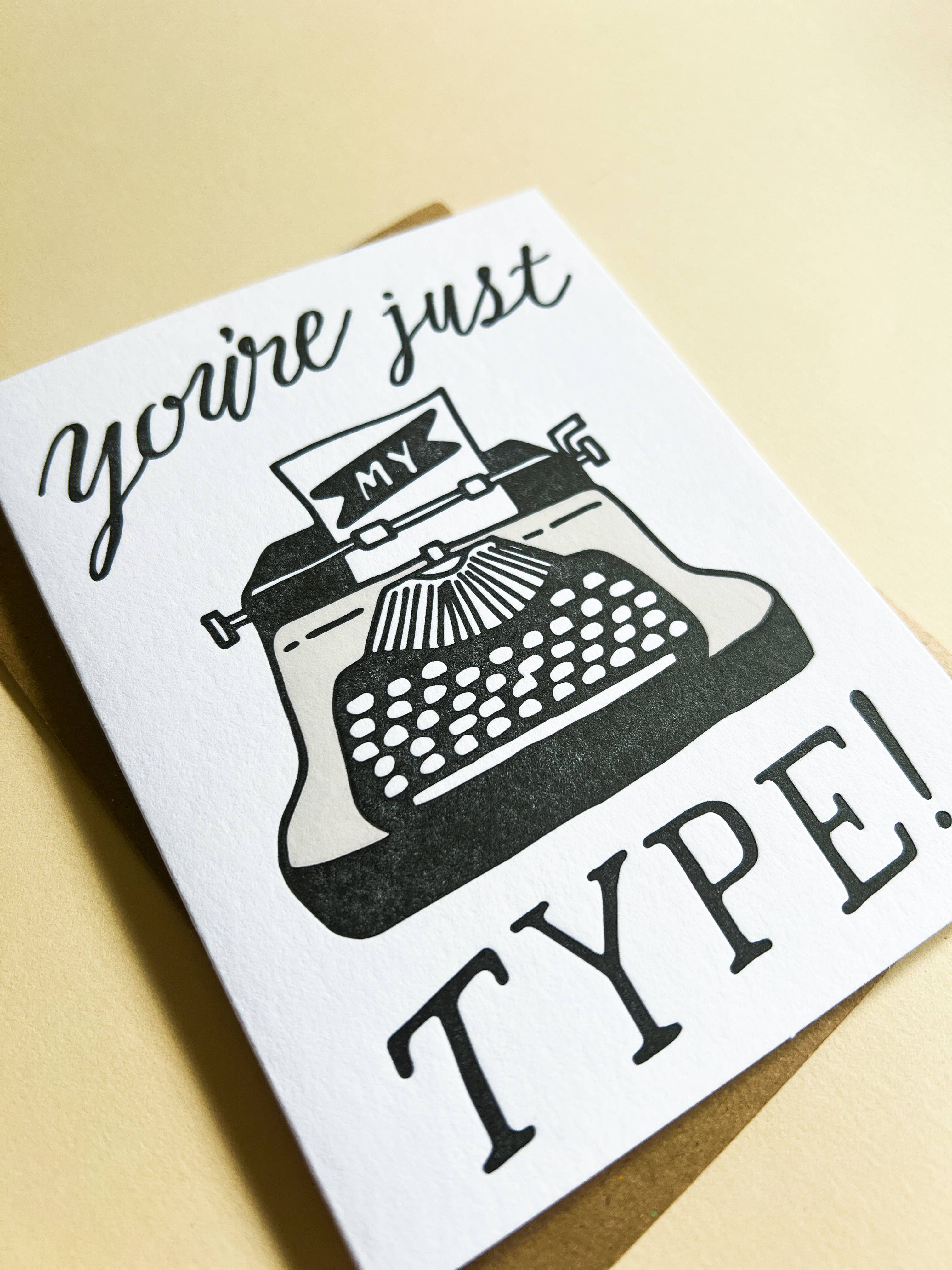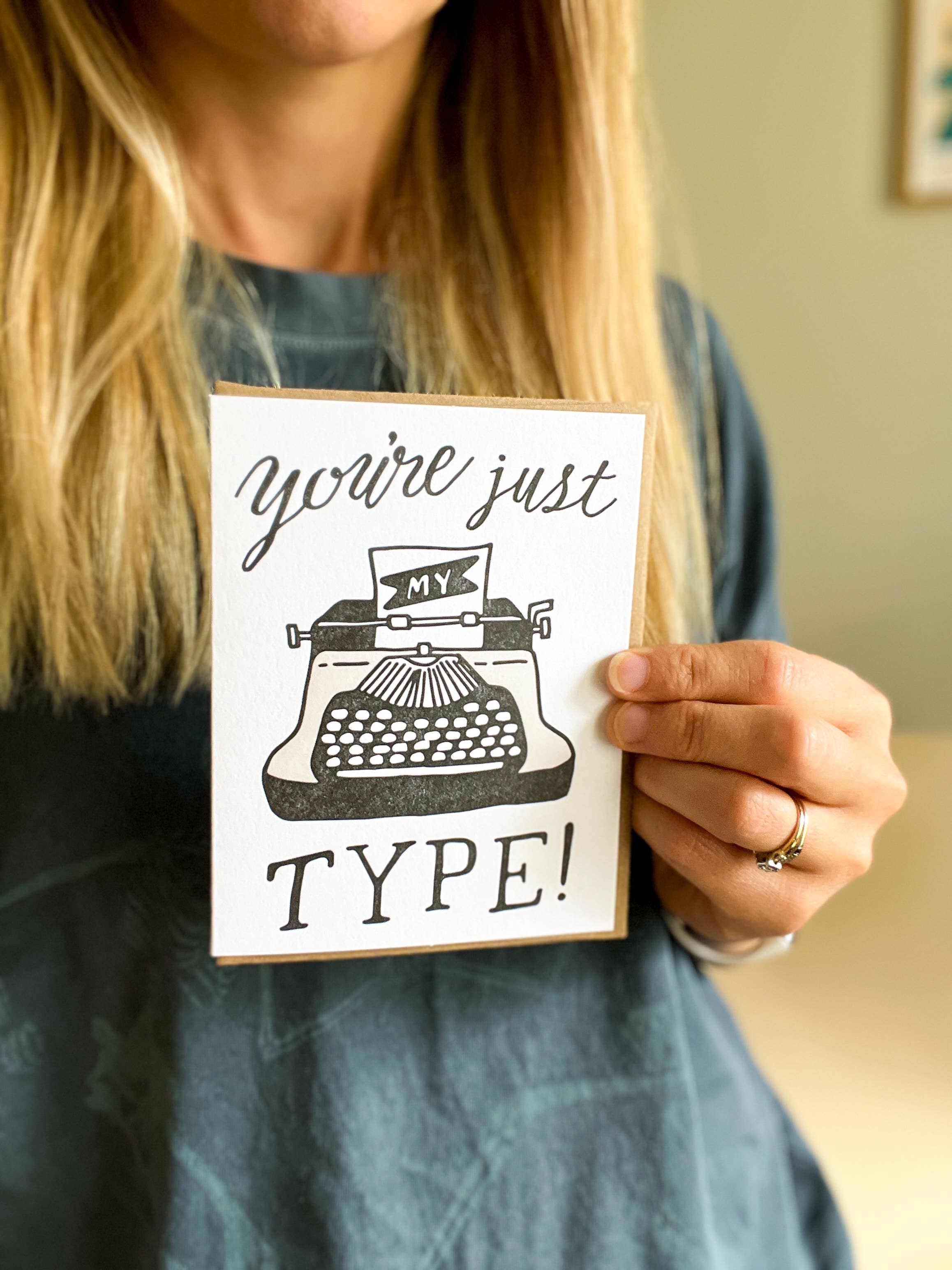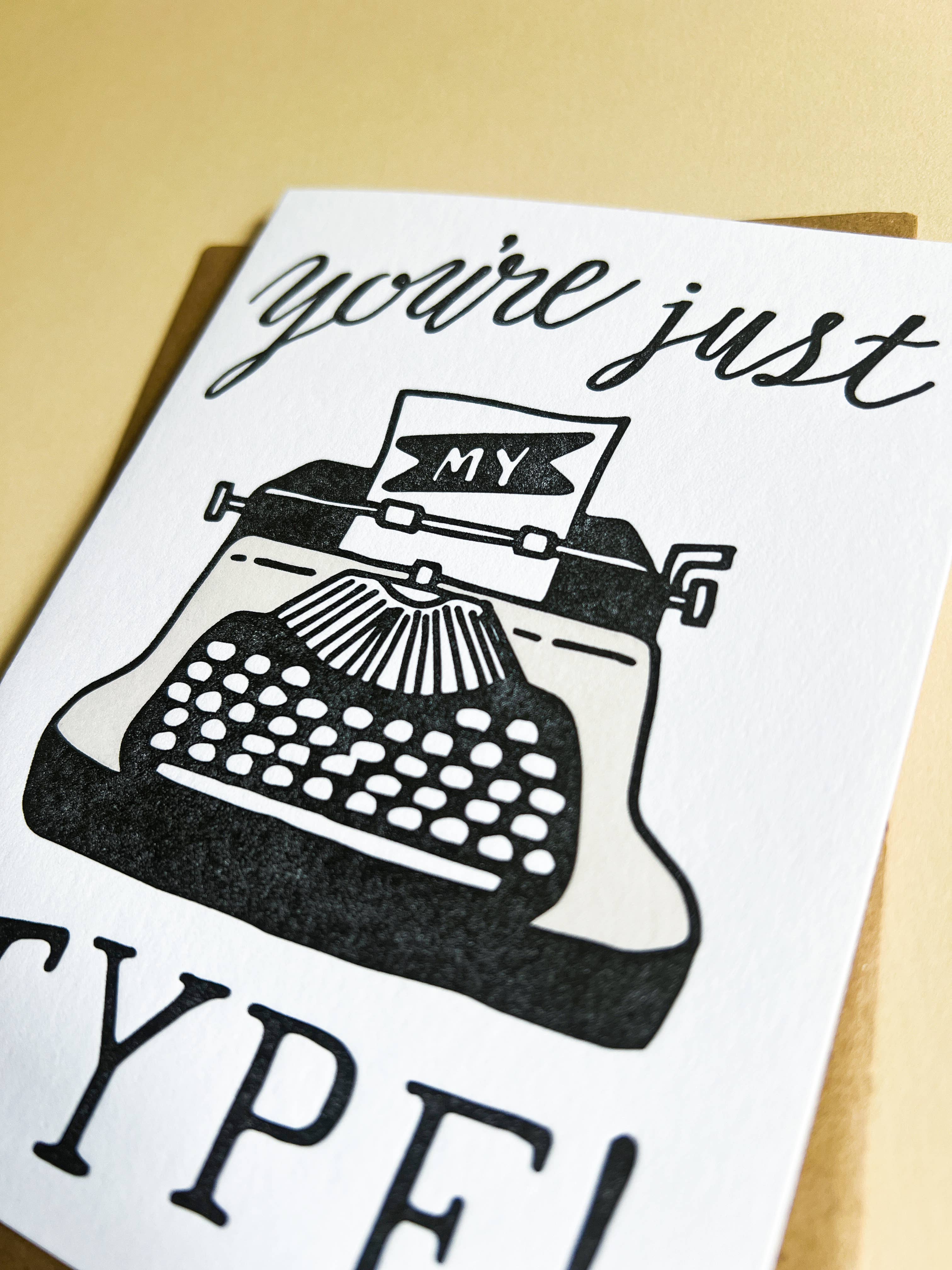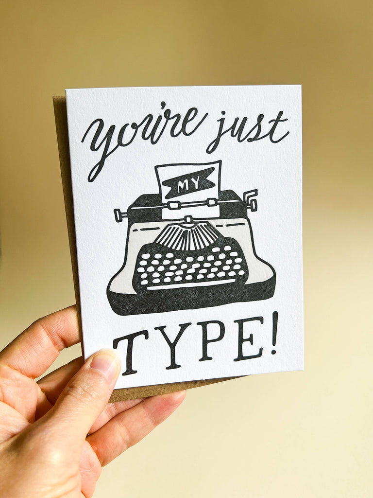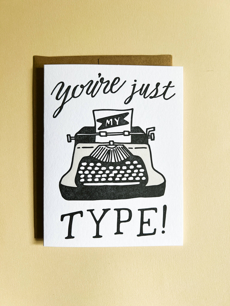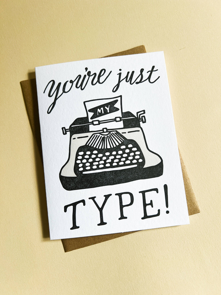 Vintage typewriters. Need I say more? This greeting card is the perfect option for that friend with an old soul who loves all things antique. This letterpress, handmade card is printed on cotton paper using a 100-year-old printing press.