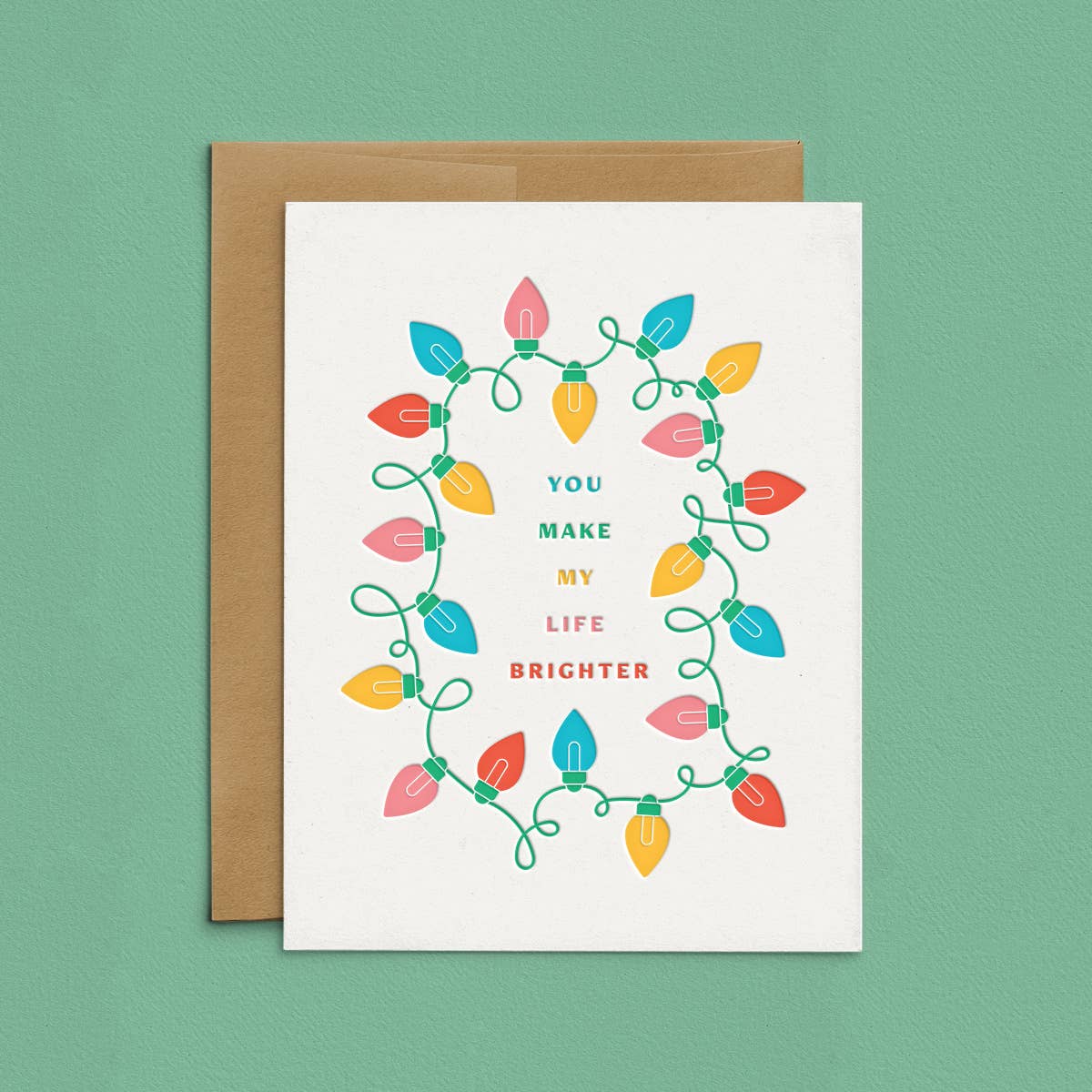 You Make Life Brighter Christmas Letterpress Greeting Card