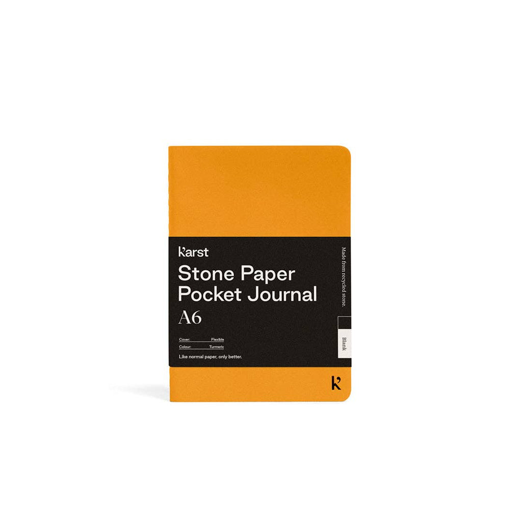 Perfect for everyday carry. These tree-free A6 Pocket Journals are perfectly sized to carry with you on the go. Made from high-quality, sustainable, and recyclable stone paper. Back pocket for loose notes, and always thread-bound, never stapled. Our unique, eco-friendly material is acid-free, bright white, and waterproof, with a premium look and feel. 52 blank pages - micro-perforated for easy removal, color matching stitch binding, waterproof cover and pages, back cover storage pocket.