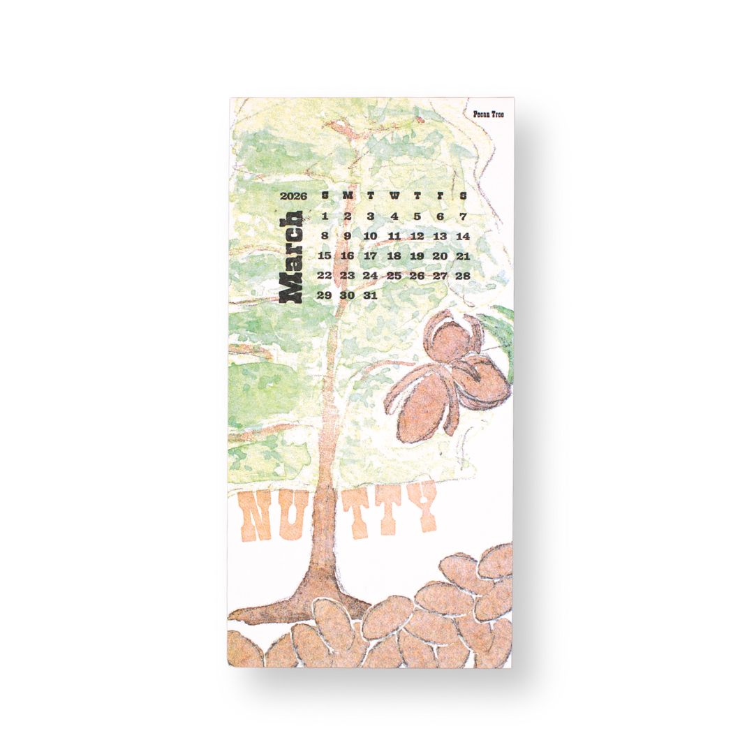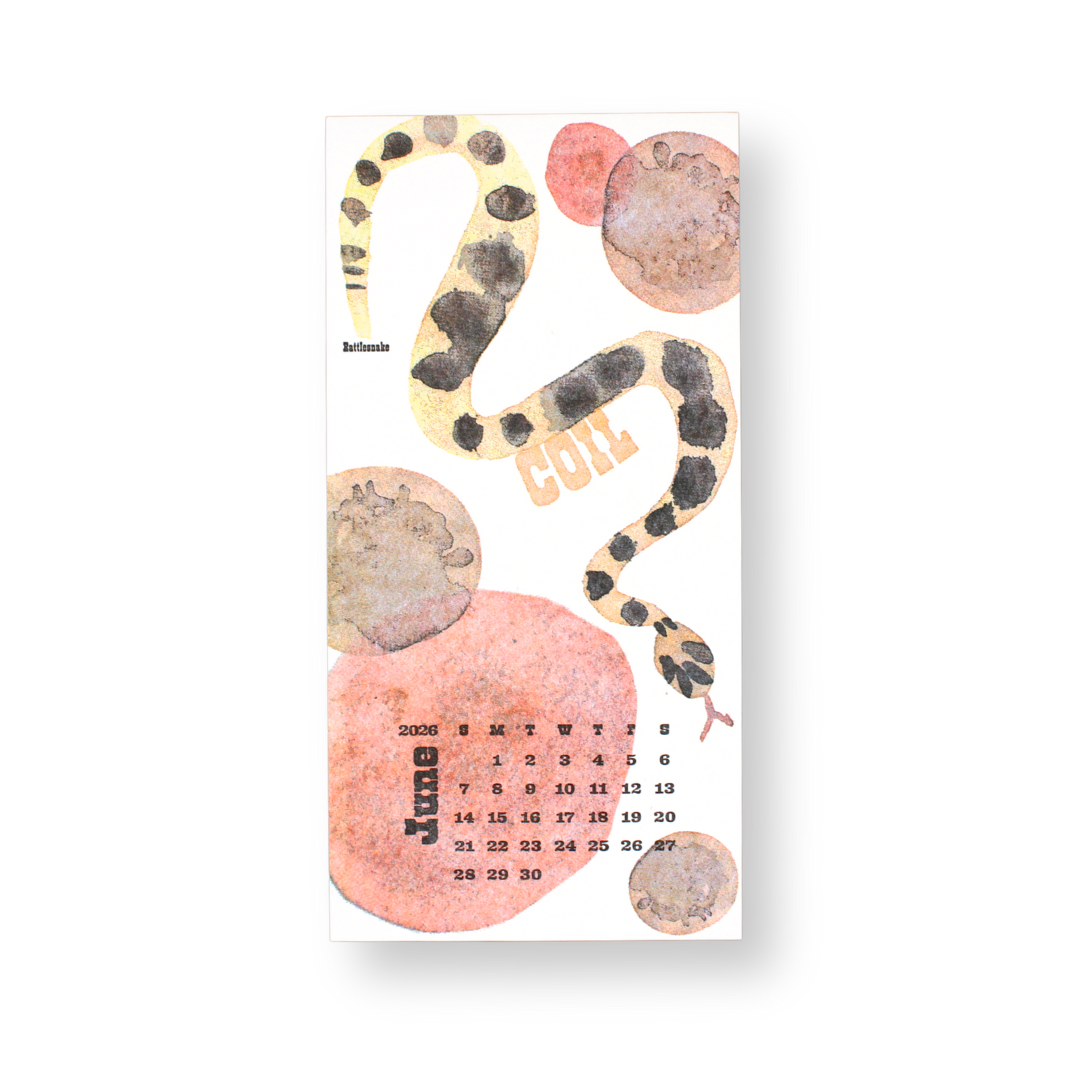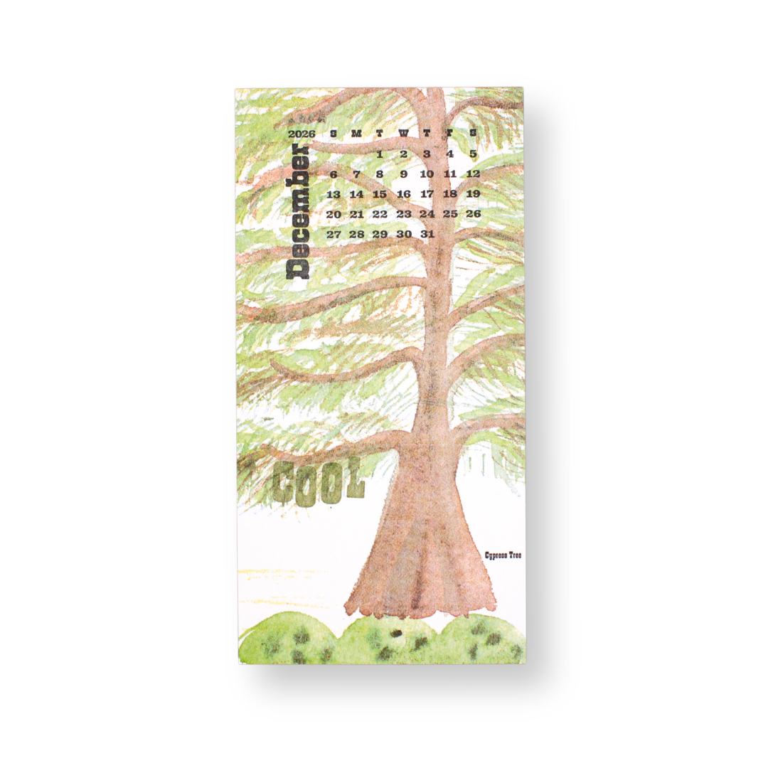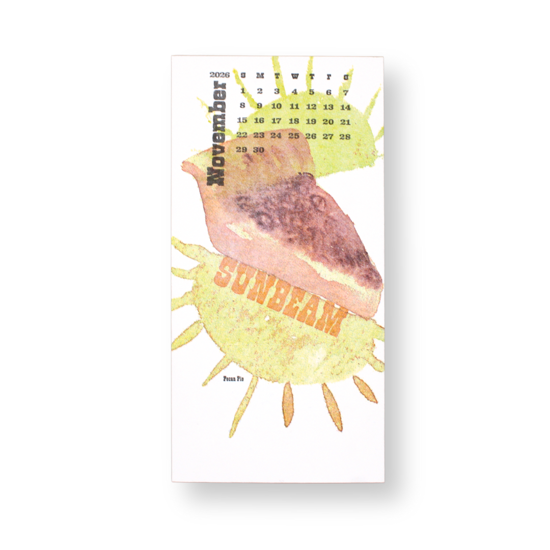 A 12-month letterpress desk calendar created by our Founder Kyle Hawley, this calendar is the perfect way to ring in 2026—the Texas way. Each month card is letterpress printed by hand, right here in our Austin, Texas, giving this calendar a special, handmade touch.
