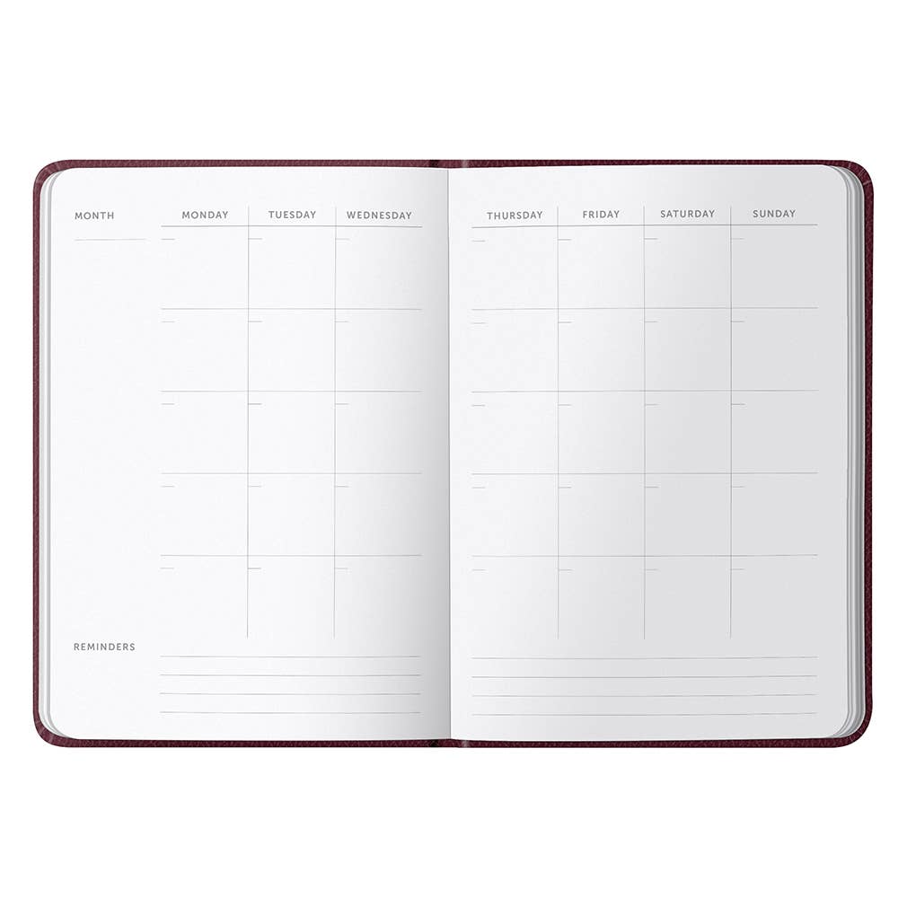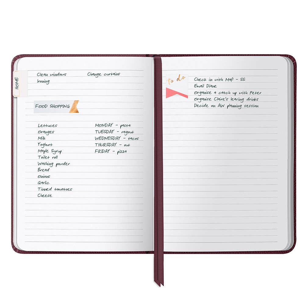This everyday A5 notebook is full of smart details such as tear-out pages, stickers and undated monthly planners. A5 in size with a classic burgundy cover, the notebook is an ideal size to fit in your bag. Busy people, take note! Features: Lined pages Undated month planners Stickers & pocket Is FSC® Certified