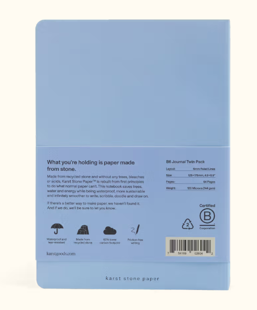 Designed to keep up with the way you think, plan, and create, the B6 Journal Twin Pack brings together two lightweight 64-page stone paper notebooks in one compact set. Use them to split work from personal projects, swap to a fresh one the moment the first is full, or keep one at home and one on the go - the choice is yours. Crafted from our signature waterproof, tear-resistant stone paper and in the most sought-after B6 size, it offers a premium writing experience and double the space without ever weighing you down.