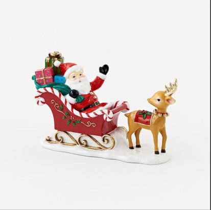 Ho ho ho! Bring festive cheer to your home with this delightful Santa in Sleigh resin statue. Crafted with charming details, this jolly figurine captures the magic of Christmas morning as Santa prepares for his big night. Perfect for holiday displays, mantels, or as a thoughtful gift for collectors, this whimsical piece adds warmth and wonder to any space. Let the spirit of the season shine bright!