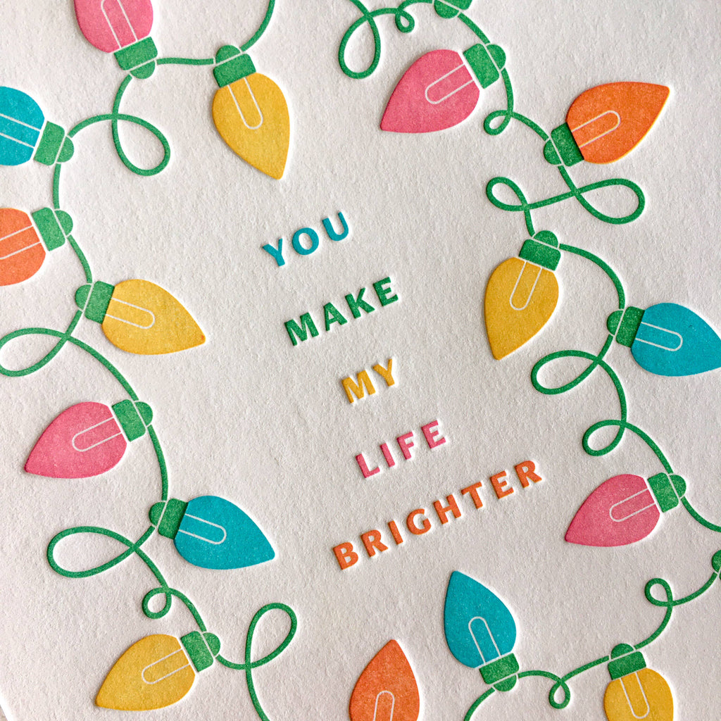 You Make Life Brighter Christmas Letterpress Greeting Card