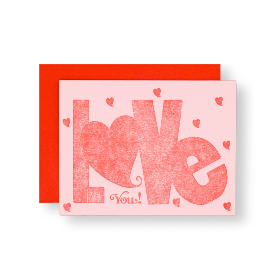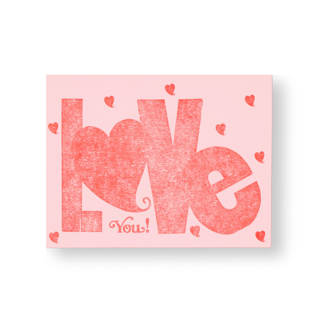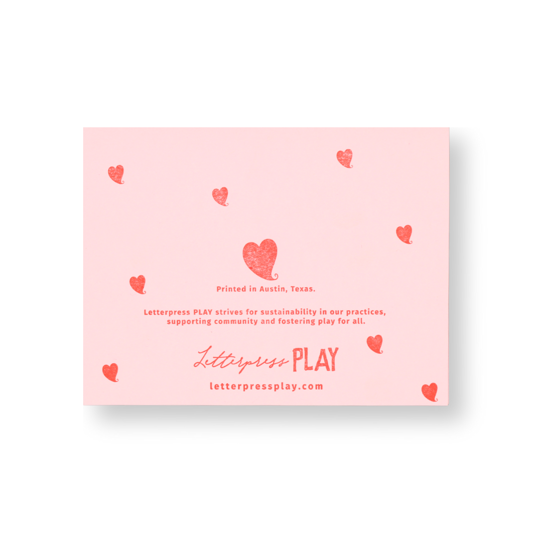 There's nothing as special and sentimental as a handwritten greeting card to gift to a significant other during the Valentine's holiday. Show your love and appreciation to your favorite sweetheart with this handmade letterpress card, featuring a blank interior where you can write your own personal love note. Our eco-friendly cards are letterpress printed with polymer plates on recycled paper and packaged in a biodegradable clear sleeve.