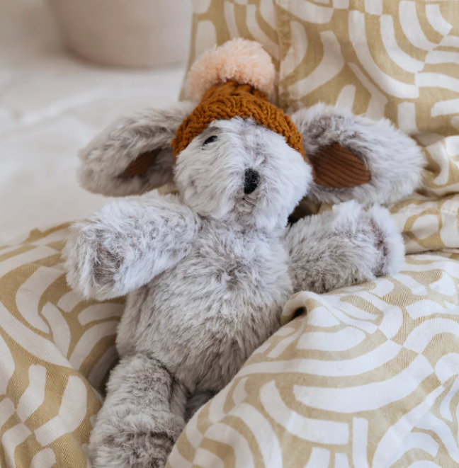 Made with pepper buttery soft plush and an Australian merino wool terra-cotta beanie, Edith rabbit is as loyal as she is cuddly.