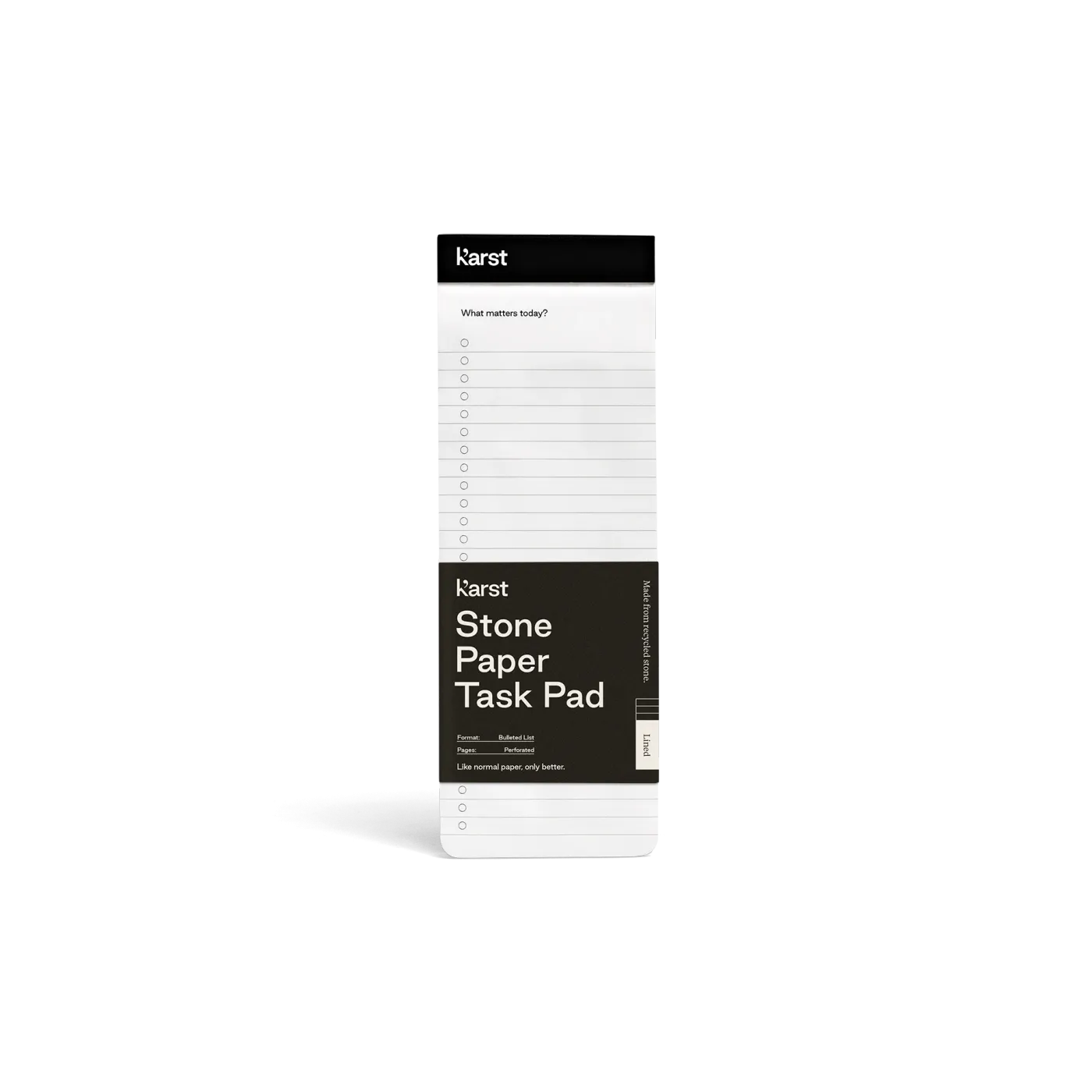 This Task Pad is for perfect quick notes, lists, and reminders. With a top flip binding, write or draw comfortably from any angle, and remove each sheet with ease along the micro-perforation. Our unique, eco-friendly stone paper material is acid-free, bright white, and waterproof, with a premium look and feel.