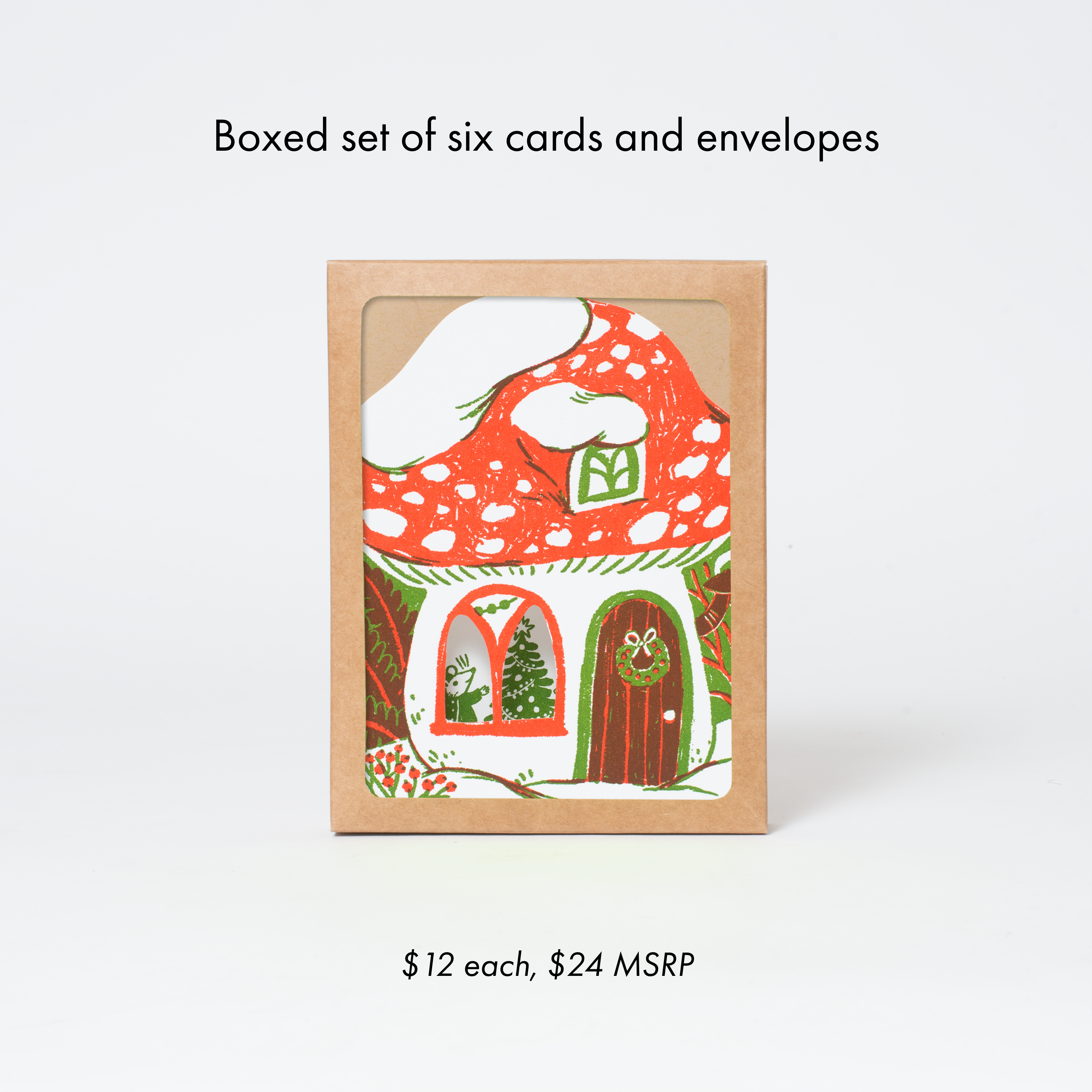 Peek inside to see the little mouse family trimming the tree. Available in a boxed set of six cards. All about this card: Comes with a kraft envelope. -Dimensions: A2 (4.25 x 5.5 inches). -Designed by Phoebe Wahl. About us: We're EP.MFG, and we make nice cards. ☺ Letterpress printed by hand in Portland, Oregon. Shop cards from five incredible designers, all in one place.