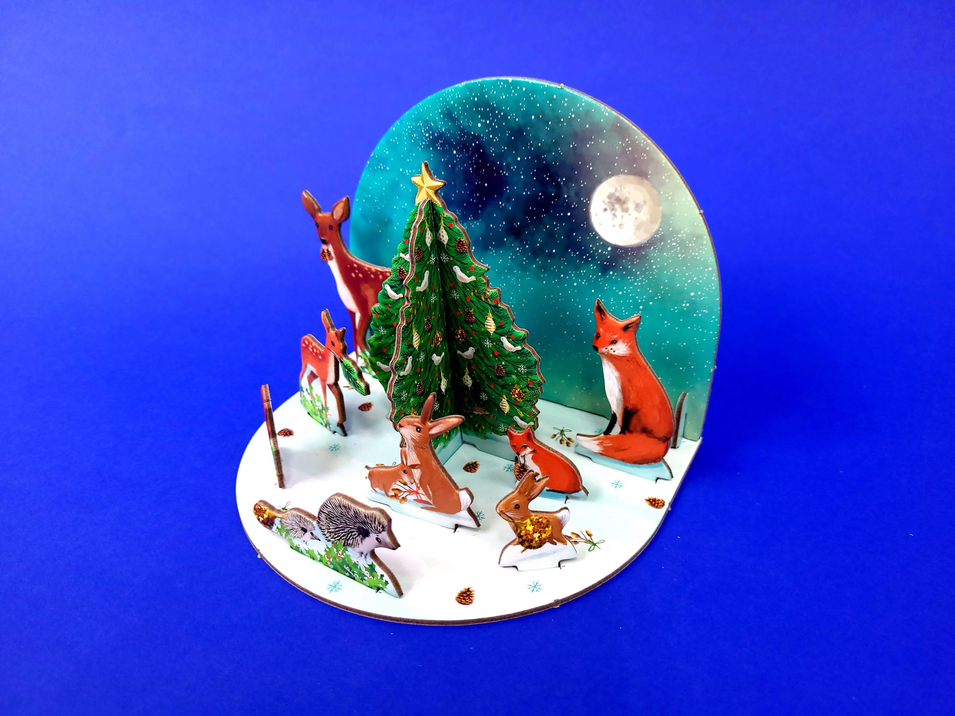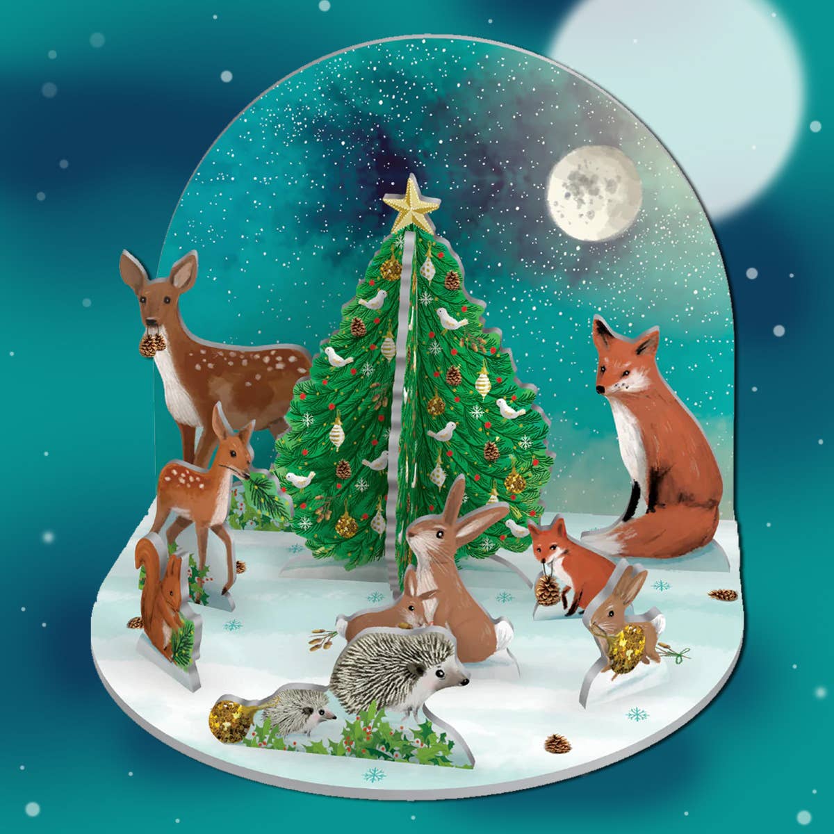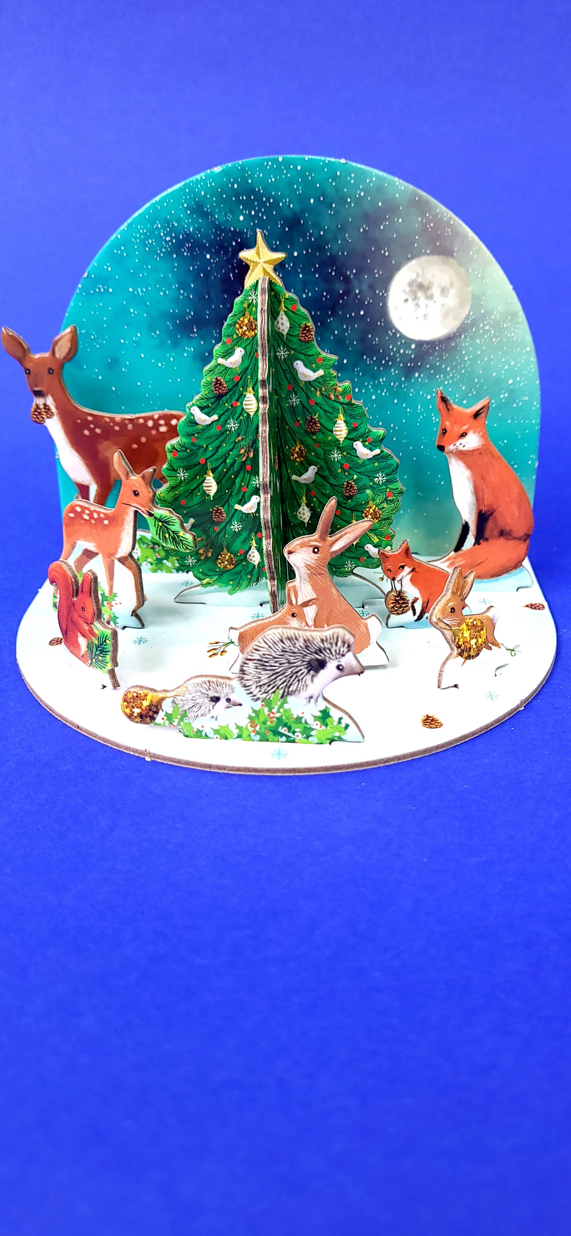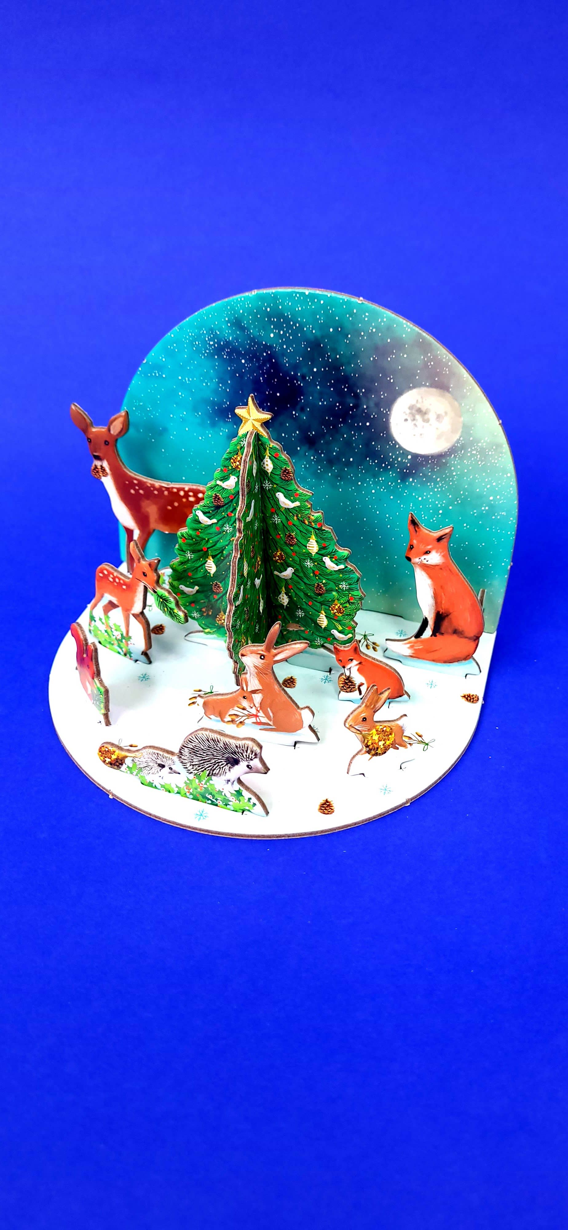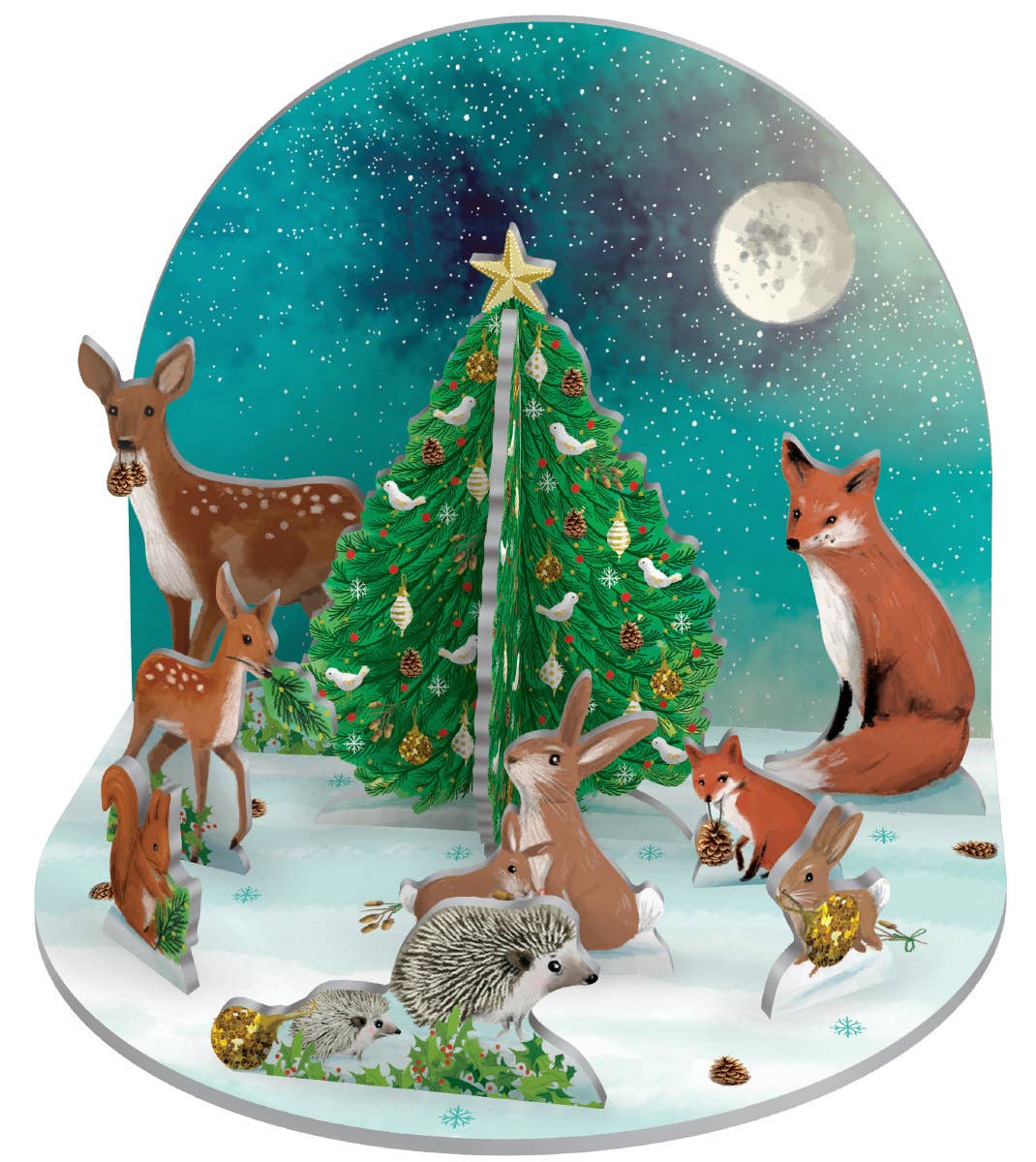 A 3D magical Christmas tree decorated by enchanting woodland creatures from our Heart of the Forest range featuring artwork by Jane Newland.