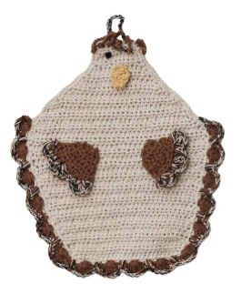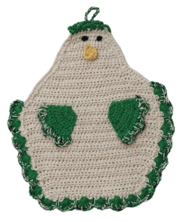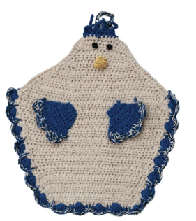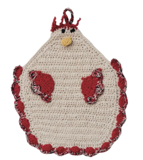 Add a dash of whimsy to your kitchen with this Cotton Crocheted Chicken Potholder. Soft yet sturdy cotton keeps your hands safe from heat, while the quirky chicken shape and bright color options bring a smile to every meal prep. Hang it by the handy loop for quick access—and get ready for a coop full of compliments every time you cook!