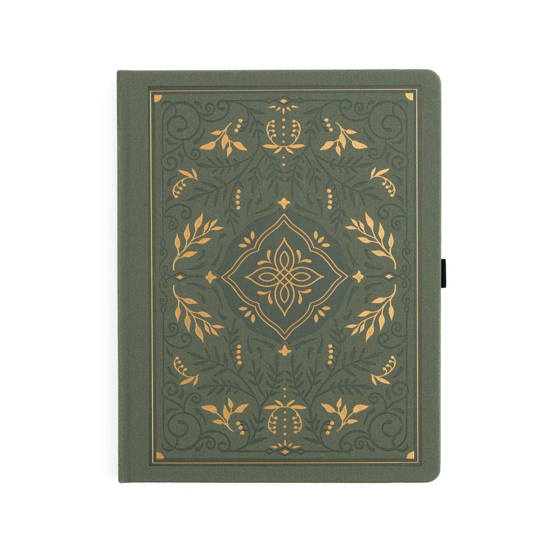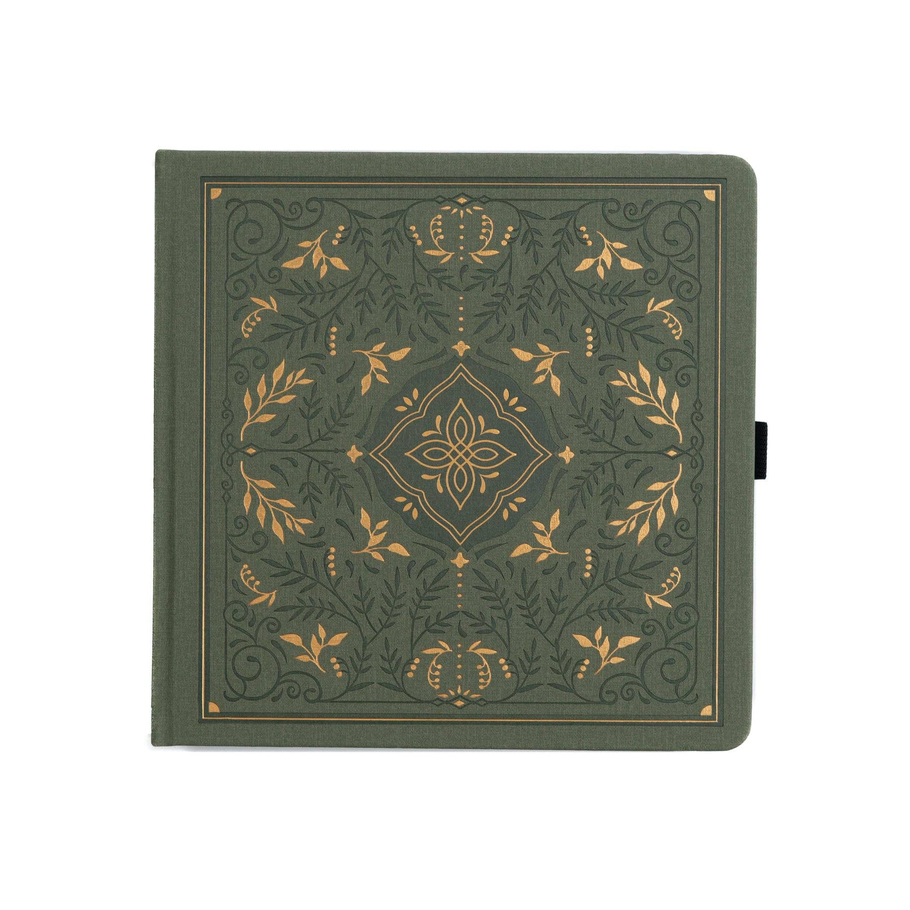 Storybook in Vintage Olive – Notebook Collection Elegant notebook with a vintage olive linen cover and gold-foil storybook design. Offered in multiple page layouts across 7 sizes. * Cover: Linen, vintage olive with gold-foil detailing