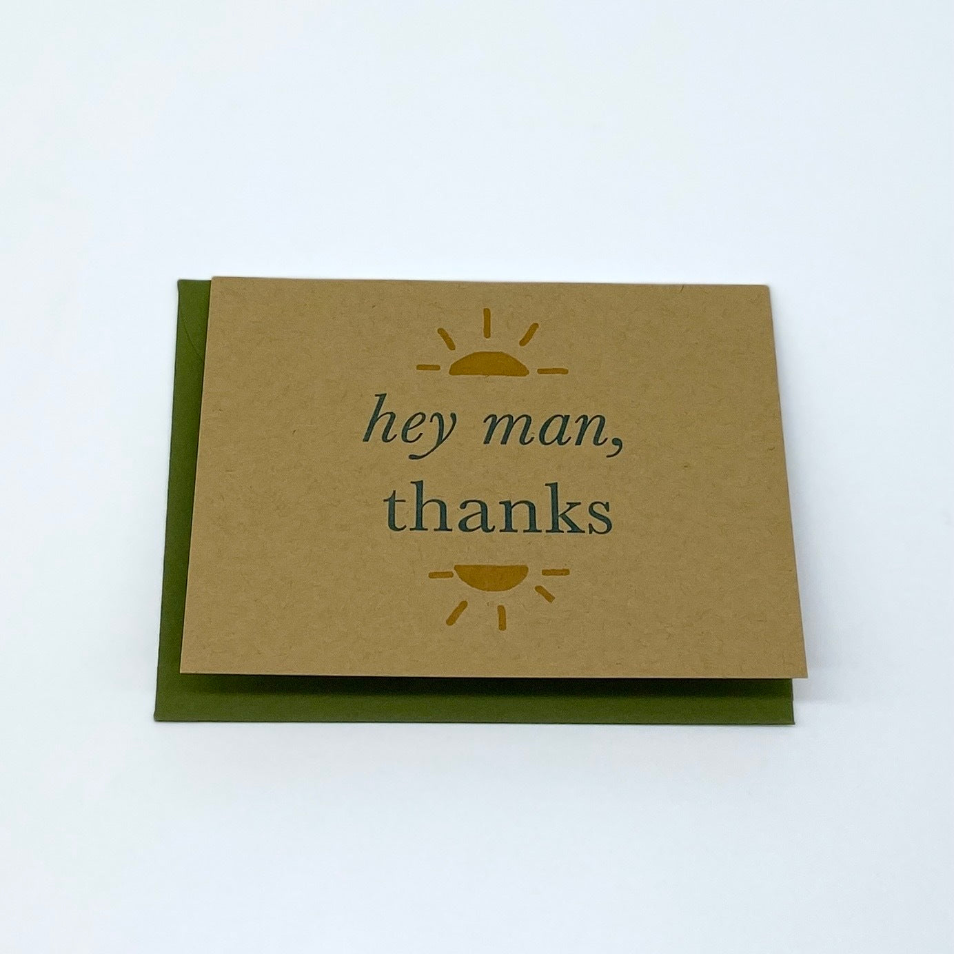 To-the-point and straightforward—the perfect way to express your gratitude. This handmade Thank You card features a blank interior for your personalized message. Our 100% eco-friendly cards are letterpress printed with polymer plates on recycled paper and packaged in a biodegradable clear sleeve.