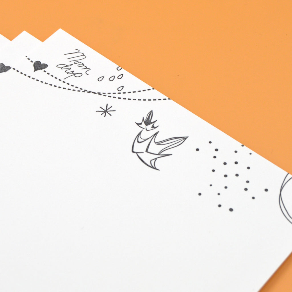 Infuse enchantment into your messages with our delightful pack of 5 Whimsy Moondrop Notecards. Each card is meticulously letterpress printed with intricate details, featuring the graceful beauty of moondrop blooms. The set, accompanied by 5 elegant beige envelopes, provides a sophisticated and nature-inspired touch to elevate your correspondence.