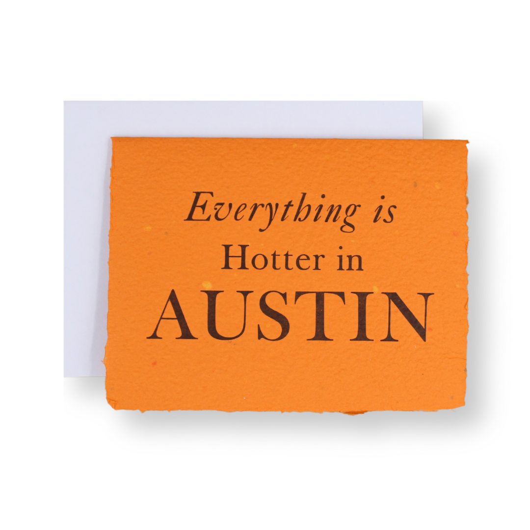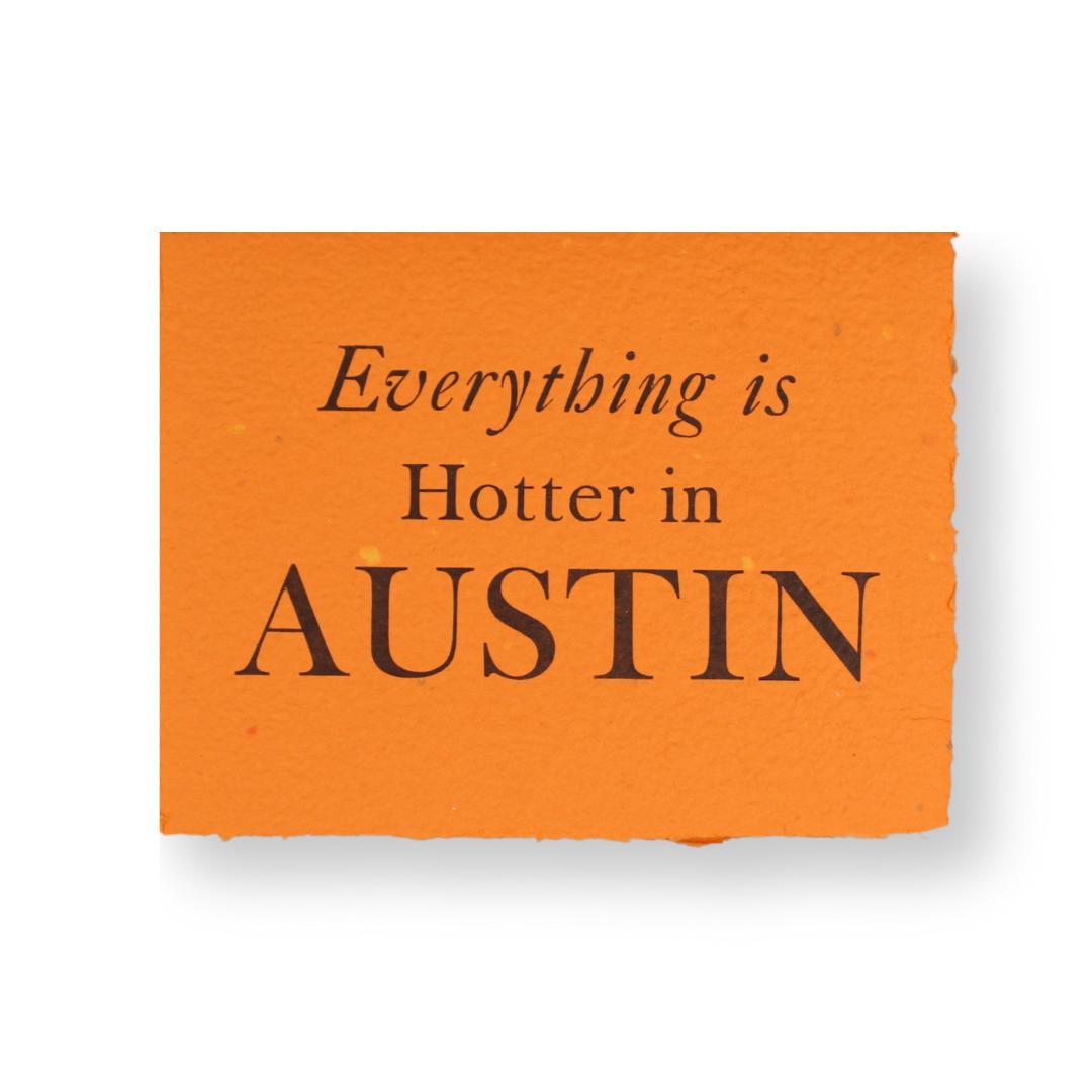 Our line, "Hot Metal on Heavy Metal" pays homage to our Heavy Metal Presses, the Type, and the music Austin is known for. While many know Nashville as the Country Music City, here in Austin, we lean a bit more Heavy Metal!