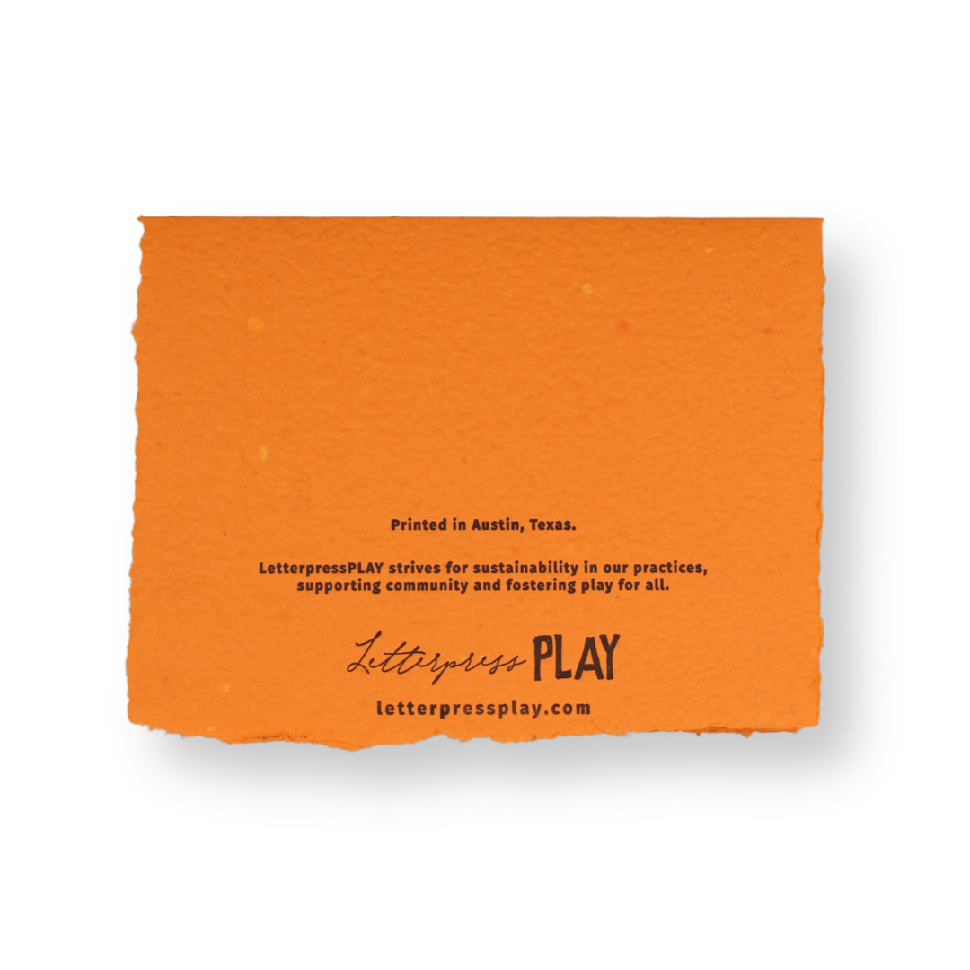 This pretty, hand-pressed card features beautiful black lettering on the front and a blank interior for your personalized greeting. Our 100% eco-friendly cards are letterpress printed with polymer plates on recycled paper and packaged in a biodegradable clear sleeve.