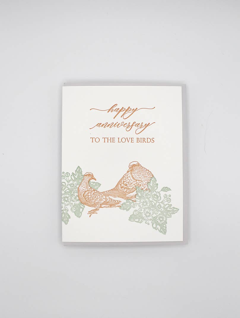 Happy Anniversary Love Birds Letterpress Greeting Card
